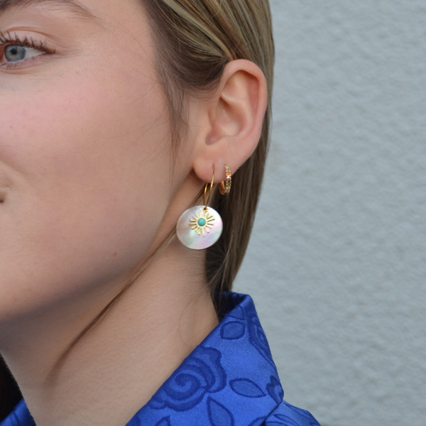 Fijne oorbel met twee bedeltjes aan. Ideaal om je outfit een extra touch te geven.